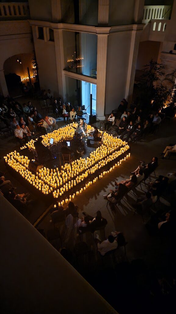 Desde el primer momento, los asistentes fueron recibidos por un ambiente cálido y sofisticado. Cientos de velas iluminaron delicadamente el recinto, creando una atmósfera romántica y acogedora que contrastaba con la energía vibrante de la ciudad.